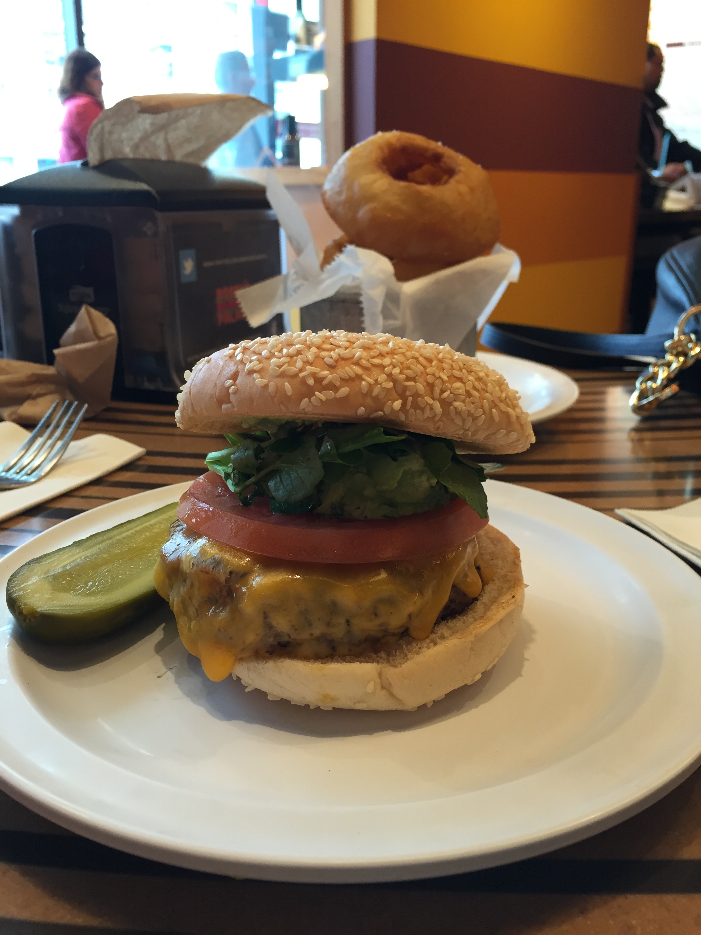 One awesome thing we got to do was go to lunch at Bobby Flay’s restaurant downtown called Bobby’s Burger Palace. Mike is a definite foodie and if any place specializes in burgers, steak, or BBQ, he’s in. The architect in me was intrigued with its unique interior. The seating was relaxed and fun, and the bright colors made it a really fun place to grab lunch. Burger choices were great; I had a burger with avocado relish! Among our group, we also devoured onion rings, sweet potato fries, and two milkshakes (we walked a lot that day so we didn’t have to feel guilty, right?).