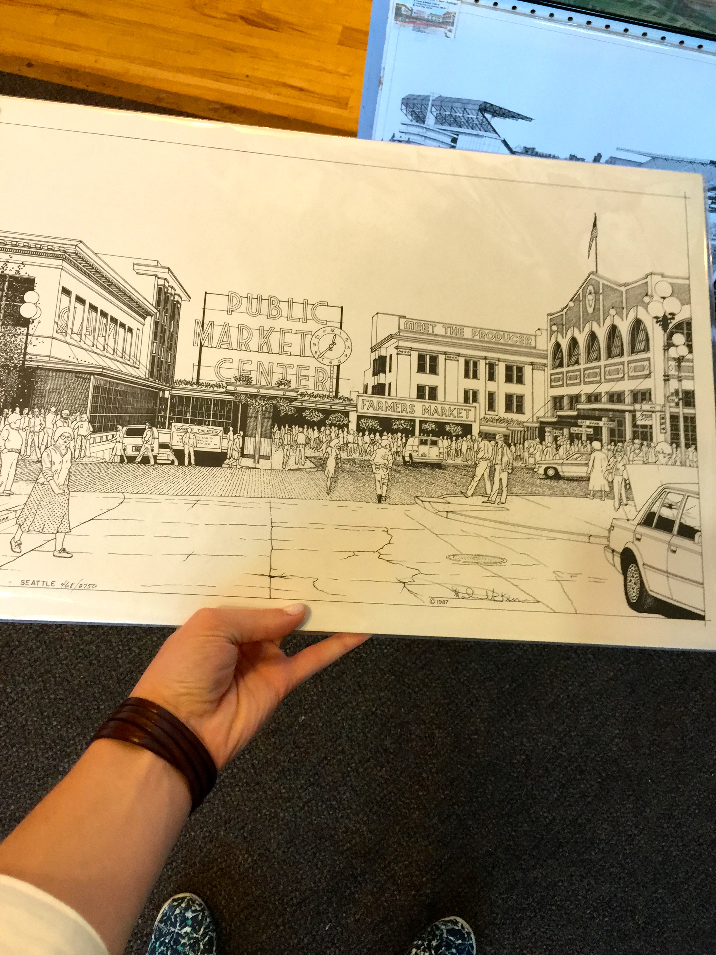 - Patrick Kerr is an architect from Seattle and he has a studio where he sells prints of architectural drawings he has done of the city. Being an architecture and construction management student, I was so happy to run across his shop in the lower levels of the Public Market. I knew immediately that I was going to purchase a print, and settled on a black and white masterpiece of the Public Market. I have already framed and hung it at home : ) You can visit the website HERE to view his work.